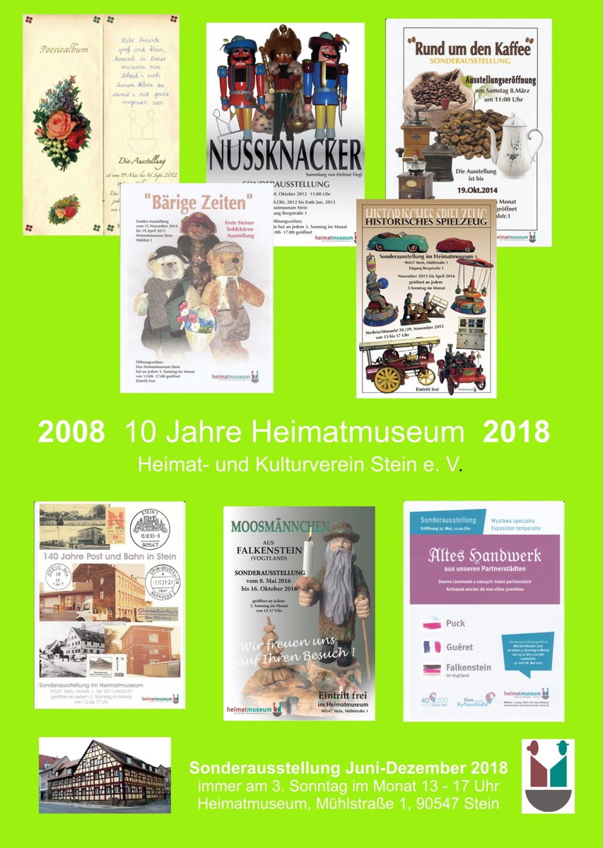 Hier hat auch das Heimatmuseum Platz gefunden. Es wurde am 31. Mai 2008 eröffnet und anläßlich des Stadtfestes der Öffentlichkeit vorgestellt. Auf 120 qm Fläche stellen wir die verschiedenen Stiftungen und Leihgaben Steiner Bürger und Bürgerinnen aus. Dabei versuchen wir die Vergangenheit von Handwerk, Industrie, Familien- und Vereinsleben darzustellen. Wir hoffen, die Geschichte unserer Stadt für die großen und kleinen Steiner anschaulich präsentieren zu können. . Dazu sind wir auf die Unterstützung der Bürger angewiesen und würden uns freuen, das eine oder andere gute, alte Stück für das Museum zu bekommen (auch leihweise).