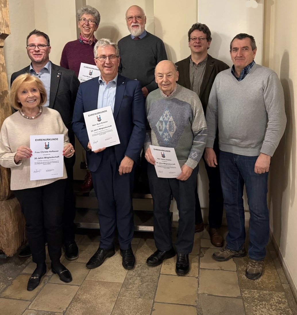 Der Heimat- und Kulturverein Stein ehrte am 24.01.26 im Rahmen einer Veranstaltung Mitglieder für 25, 30 und 35 Jahre Vereinszugehörigkeit. In der Ansprache vom 1. Vorsitzenden Jens Ostendorf wurde die große Bedeutung jeder Form der Unterstützung hervorgehoben – ob aktiv im Vereinsleben, als regelmäßiger Besucher oder als stilles, treues Mitglied. Der Verein dankte den Geehrten herzlich für ihre langjährige Verbundenheit und ihren Beitrag zum Fortbestehen der Gemeinschaft. Geehrt wurden: Beate Schobig (25 Jahre), Herr Klaus-Peter Salza, Frau Christa Hofbauer, Heinz Distler (alle 30 Jahre) sowie Kurt Krömer (35 Jahre).